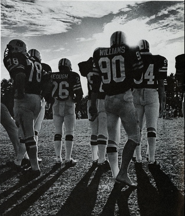 The Uniform: I previously wrote about the Wildcats' uniforms here. One year earlier, UNH introduced the uniform that went virtually unchanged until 2000, except for a sleeve trim alteration in '78 and other minor things, such as the size on the "NH" logo or the name/number fonts. As I've mentioned before, there's a bit of a Buffalo Bills vibe to it. I'm guessing younger fans would be surprised to see the red trim, especially since they've gone so long with silver, which also was a major part of the 1950s-60s uniform.
